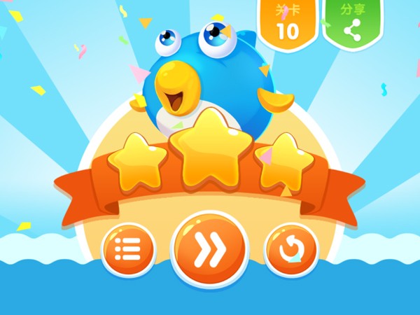 当然如果有较多空闲时间的玩家也可追求全三星过关的成就,通关容易,三星难拿。《小鱼飞飞》在每一个关卡中都设置了三颗星,玩家需要将这三颗星都收集完成才能达成成就。在游戏中,要收集三星就需要多次来回跳跃各种陷阱,玩家就要想尽办法避开障碍,开放式的解谜让你过了一关又再想过一关。