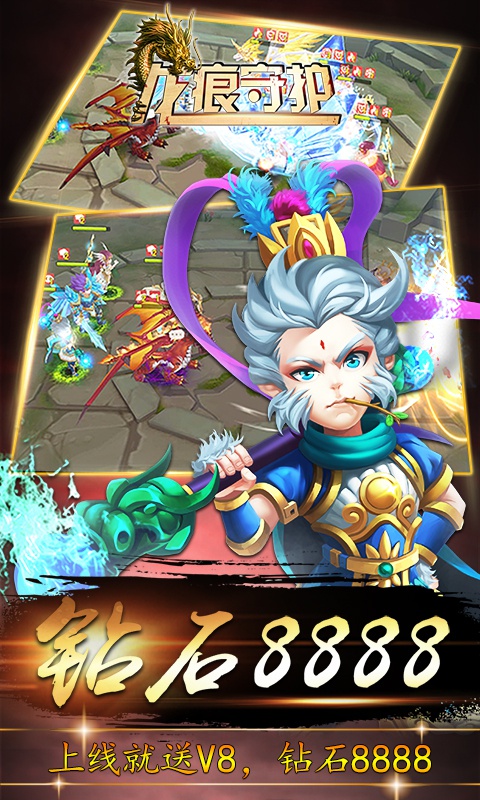 1. 上线就送V5,金币百万,钻石8888!福利嗨起来!