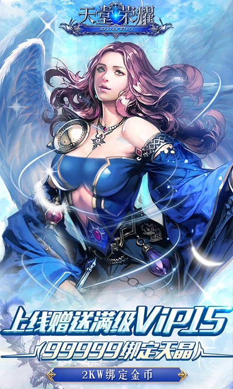 2、登录送普通满V(VIP1~15)、绑定天晶*99999、绑金*2000万;