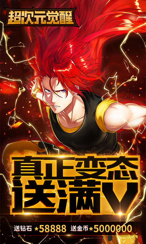 1、登录送满V(VIP1~22)、钻石*58888、金币*500万;