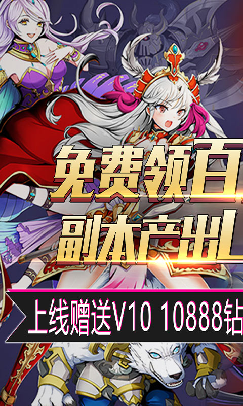 1.上线就送100元充值卡,VIP10,钻石*10888,金币*8888888,
