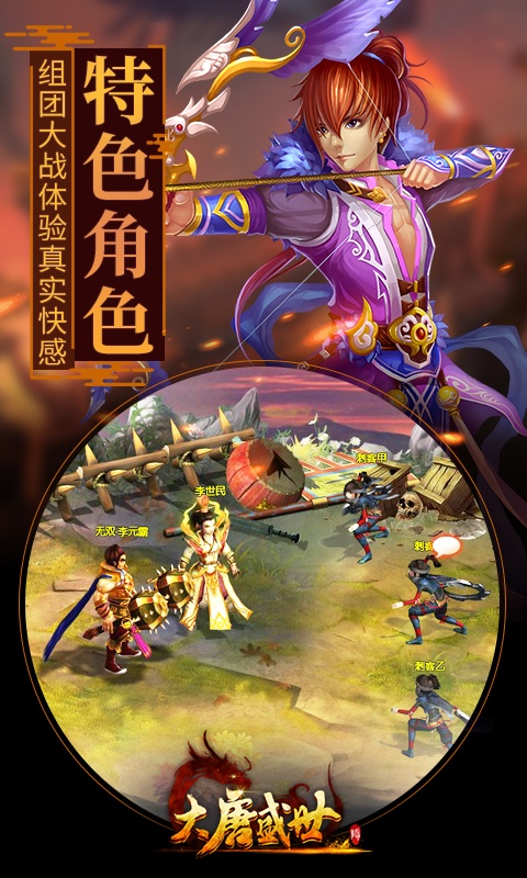 《大唐盛世》是一款集角色扮演和战争策略为一体的网页游戏。游戏以隋末唐初为背景,在游戏中,各势力招兵买马,已成乱世。玩家将招募武将,成立属于自己的势力,建立国家,并最终结束乱世。多变的战争策略、恢弘的国家版图、丰富的技能搭配,玩家的所作所为将影响游戏历史的进程!武将养成、攻城掠地、诛仙封魔……让玩家体验到征战四方、成就霸业的豪情壮志!