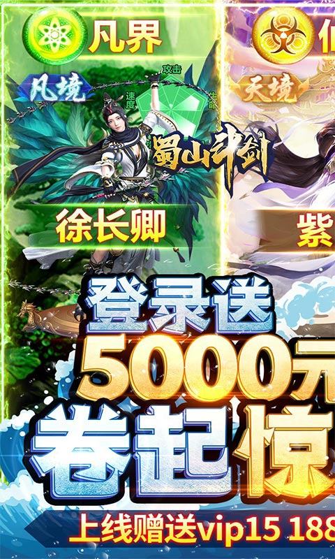 【蜀山斗剑】大幅度加快升级节奏,任务主线减少一半,极致体验,上线赠送5000元充值卡,vip15,18888元宝,100万铜钱,每日签到最高10元红包,细水怕长流,BOSS性价比之王,击杀必掉2元~10元充值卷!!!