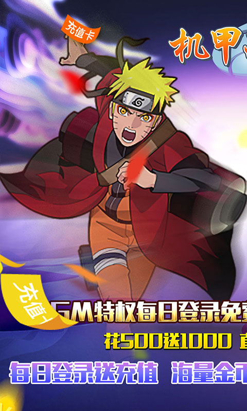 《机甲战纪(送海量充值)》这是一款根据漫画改编的回合挂机手游,角色造型和忍术招式完美还原原著,热血格斗,超酷炫忍术,战斗打击感超强,操作上简单易懂,游戏内还提供了丰富的玩法和功能,还可以通过各类副本来获取稀有道具资源。