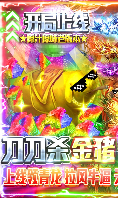 3.充值比例1:500,在线登录领取绝版幻化时装,金猪送礼切割无限爆充值!