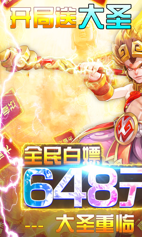 后缀说明:创角送金色伙伴箱子,可自选斗战胜佛孙悟空,输入指定新手礼包码,领取648充值卡。
