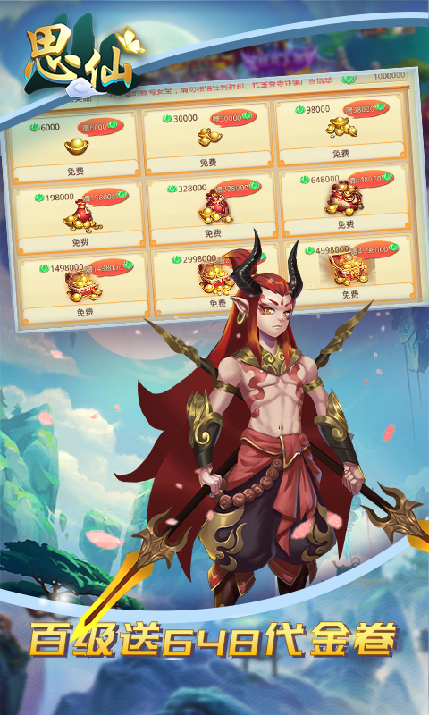《思仙》是一款经典回合制BT手游,更高的等级,更强的伤害带给你最爽快的战斗体验。登录游戏,立即赠送永久VIP15的最高特权,不花钱也能当土豪!新人达到100级立送648充值,第二天登录直接送圣兽,第七天送价值5万觉醒-万剑归宗!所有充值项无限付费,全部免费不限量,想买多少买多少,充值多少就看你点的多快!新服超强福利,登陆就送无级别装备(70级强度),任务杀怪超轻松,挑战副本无压力首充任意金额即可获得超级神技,体验永久秒7的超级技能,还有648充值直接赠送!比传统回合制更加强大的宠物,摒弃复杂的宠物合成,普通宠物都可以拥有15技能,更有逆天宠物神技,带你体验不一样的宠物养成