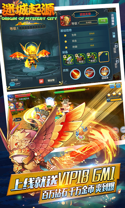 1.上线送VIP18,GM1、百万钻石,千万金币,好玩根本停不下来!