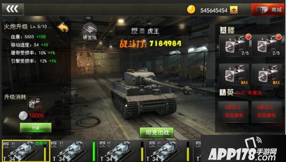 精英配件:高等级坦克有两个普通配件,需要精英配件图纸和银币升级。
