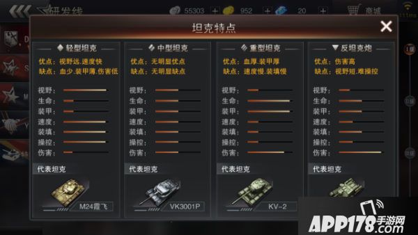 轻坦的特点是机动性强,行进速度、装填速度、射击速度和转向速度都遥遥领先。但是其火力弱装甲薄的特性,成为了它致命的缺点。很多新手刚开始玩的时候难免会抱怨,打不死别人却总是被别人一炮打垮。轻坦的这些特性注定它不适合和敌人正面刚,而为队友提供视野才是王道。