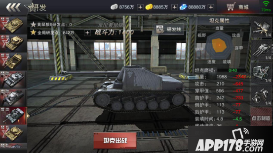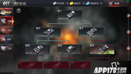 游戏中有着坦克研发路线,不仅再现了坦克发展历史,更是为各位精英人员提供了发展的参考!你的坦克你做主!点亮对应的坦克图标即可获得对应的坦克!