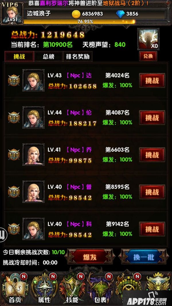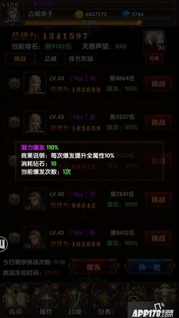 天榜排名越高获得声望奖励越高,声望则可以用来兑换各类强力宝石和道具,提升你的战斗力,加油吧,少年,没有不可能,只要控制好时机,屌丝也有可能成神!