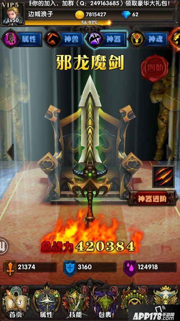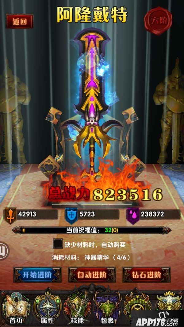 游戏中神器共计分为十阶:复仇之剑、天选之剑、雷神之怒、邪龙魔剑、螺旋魔剑、阿隆戴特、玄光圣剑、朱诺星剑、宿命者该隐、死神德莱弗斯。