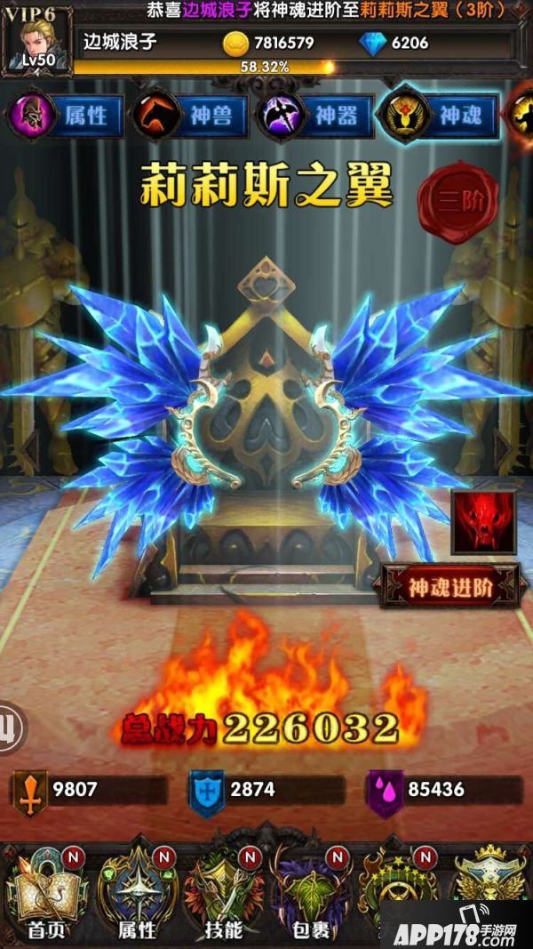 游戏中神魂共计分为十阶:摩洛克之翼、贝黑摩斯之翼、莉莉斯之翼、阿拉斯特尔之翼、贝鲁塞巴布之翼、梅菲斯特之翼、深渊、光暗、路西法的恩赐、撒旦之怜悯。