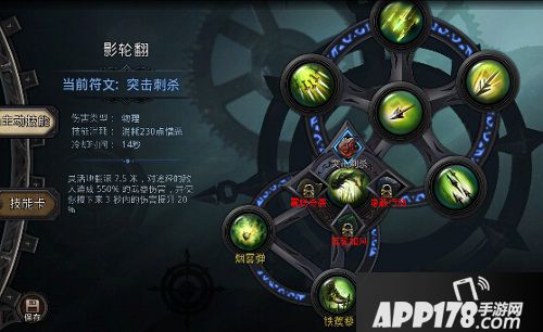 副技能选择:闪避射击-快速运动:符文效果是在接下来2秒提高20%移速,与影轮翻-震慑奇袭搭配成“一进一退”的技能组合,提速的同时降低敌人移速,给自己有充足的空间释放其他技能,等待影轮翻CD结束。