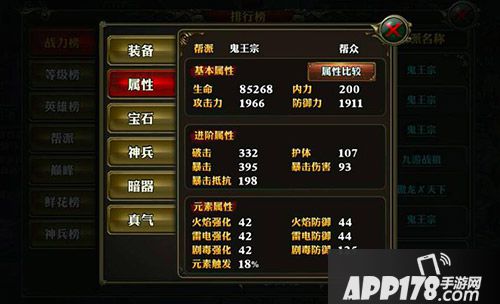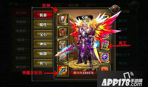 看攻略前,先看看他的个人情况吧,目前一区战力235571,全服第六,等级50,装备属性如下图: