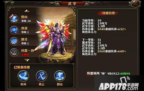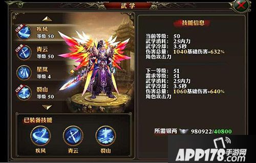技能连招的话就是神兵大招,然后使其浮空度来接技能,高的话可以接任意技能,低的话就只能是裂山了。然后普攻两到三下,自己掌握好,不要落地,然后接青云,再普攻两到三下,再接疾风,然后再普攻两到三下,就又可以接裂山了,直到没蓝。连招没有固定套路,想怎么连都行,中间穿插普攻来补充内力释放更多技能来打伤害。
