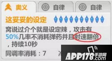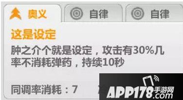 没有觉醒前的奥义是7秒时间内每次攻击都有30%几率不消耗弹药。