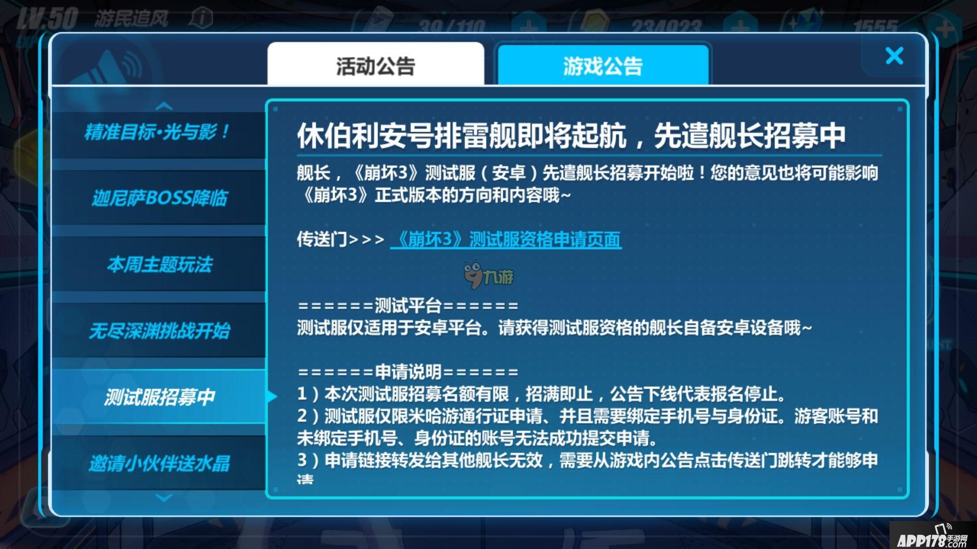 崩坏3中测试服账马上就要开放了,但是有很多小伙伴都不知道要怎么样才能获取到这次的资格,那么在接下来APP178手游小编就跟大家一起看看测试服申请详情,一起看看测试服资格获得方法吧。
