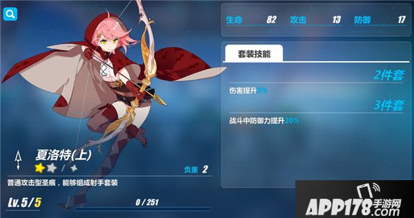 初期圣痕,在第一章便能轻松刷齐一套,和同为初始圣痕的莎莲娜相比,夏洛特虽然攻击加成少了2%,但提升的20%防御更加适合琪亚娜「白练」,能让她的神化状态拥有更高的安全性。