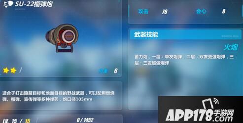 【SU-22榴弹炮】是火炮类,平时建议多以三层蓄力为主要攻击方式,其一是攻击力更强,其二是引发的小范围爆炸可以波及到目标周围的敌人。不过由于「战车」的定位更倾向于辅助,舰长可以根据自己的材料剩余量考虑是否进化武器。