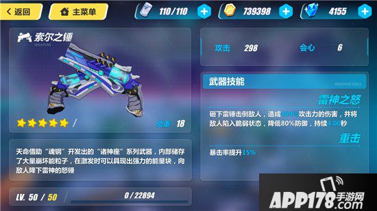 一线武器,基本通用的武器,会心加的非常高,还带减防御,虽然目前还没有准确的公式但不论前期还是后期索尔之锤都称得上神器。