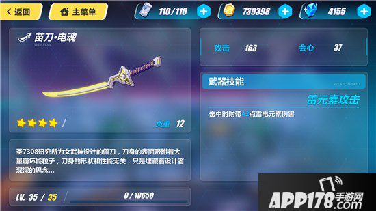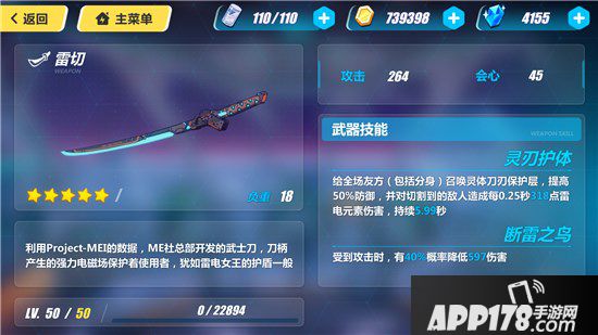 扭蛋较为容易获得的一把三星武器,基础属性不错,技能为被动,效果是附带雷电伤害,聊胜于无。与影舞的相性只能说是一般般,要是抽到了可以用一用。