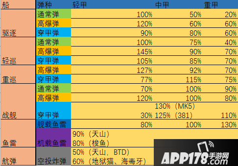 弹种:通常弹,对轻甲(70%),对中甲(100%),对重甲(90%)。