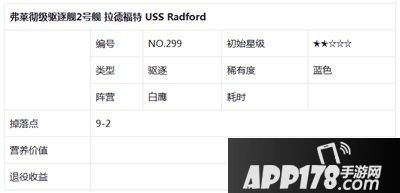 以上便是弗莱彻级2号舰拉德福特的技能以及属性,不过看属性以及技能,属于中规中矩的船,蓝皮船也没有白皮船的省油,也不如金皮船的爆炸属性,非常尴尬的位置,希望后续能开发出不一样的打法。