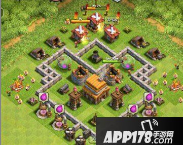 部落战争4本最佳布局,优先保护对象为资源库,市政厅。75个围墙除了把主要建筑物围起来之外,还可以做点变化。