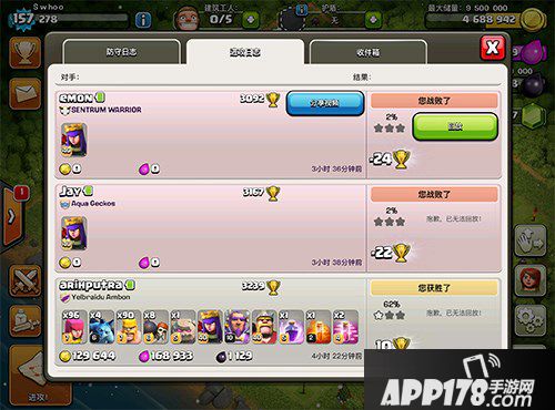 3、选择总攻方向:优先顺序:尽可能多的库或大本营>不面对俩地狱塔>没引杀联盟尽量第一时间能引出联盟>城墙结构较简单,容易炸开>尽量远离内置女王。这个顺序只是临时决定的,新手刚开始,尽量别打高防御高墙的,一般没问题。