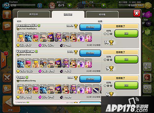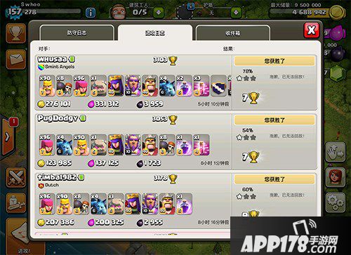 不熟悉屌丝流前尽量避免打外围建筑紧贴城墙的高防十本或十一本,水平够了,以上建筑全内置都轻松拿下50%。