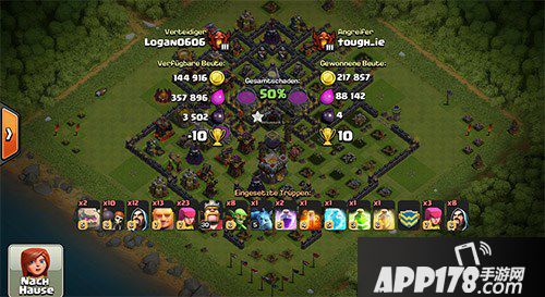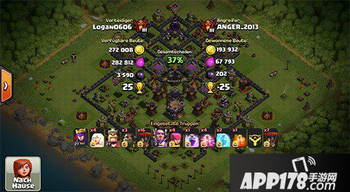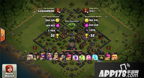 在贴一张自己日常farm使用的兵种,现在蛮王在冲40,所以使用天女,配了8个武神,是为了清边完成后配合10个胖子及40+哥布林进去爆中圈,配合狂暴基本上没有爆不了的。
