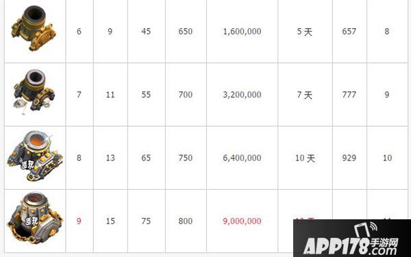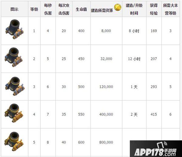 部落冲突迫击炮数据大全 迫击炮升级建造表