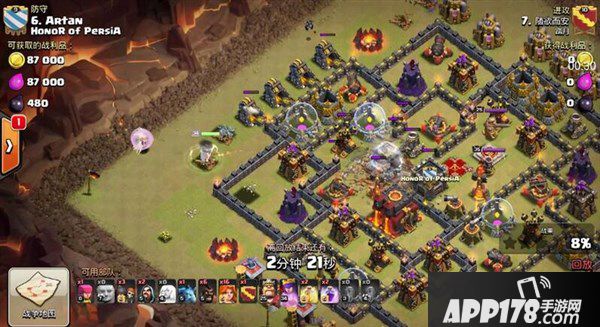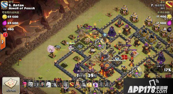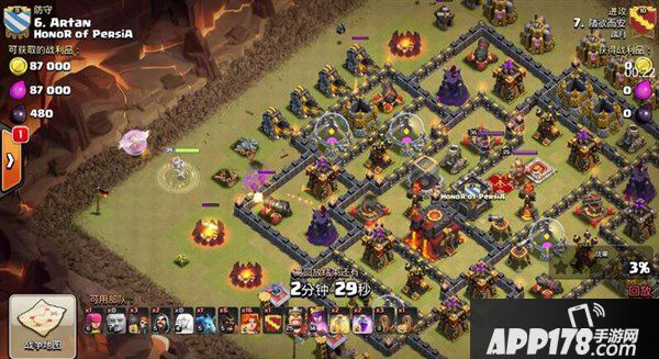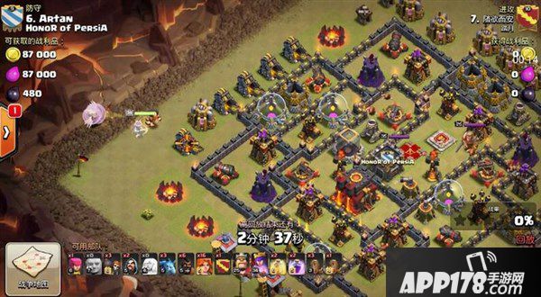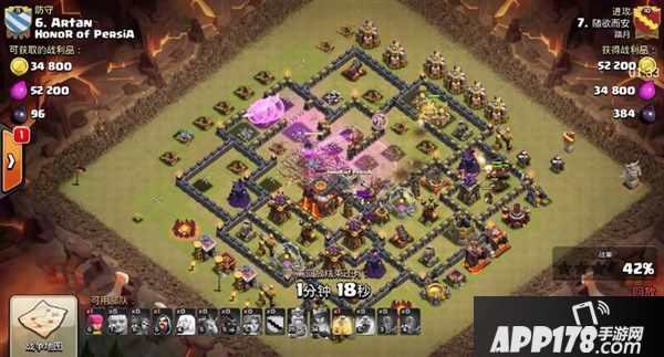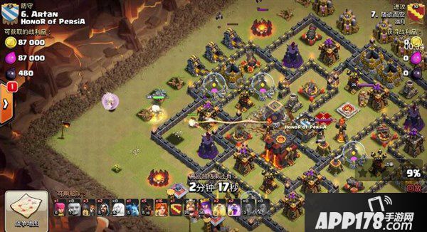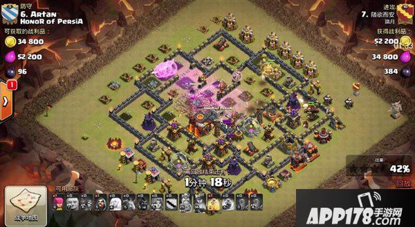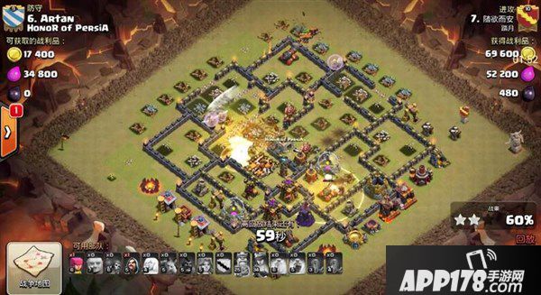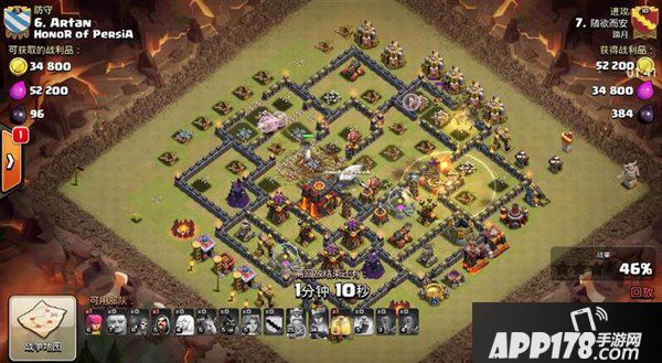 其中对方第五第六是一个一模一样的十本菊花阵,刚开打时,大家并没在意。随着战争的进行发现这个阵布局相当好,本人第一次打第五的时候打到93%两星,很是郁闷。不过在经过多次摸索后,终于在部落战快结束时打第六三星。