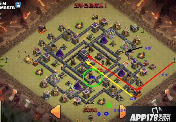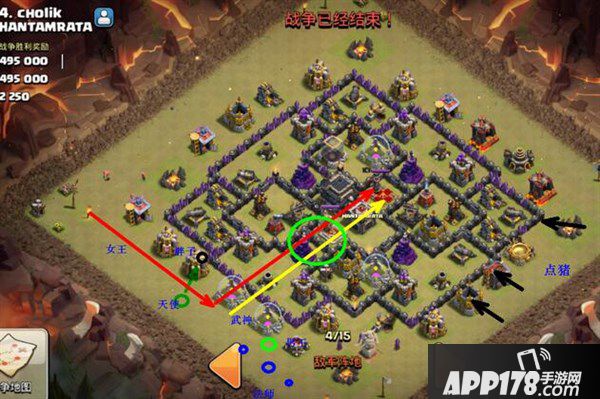 比如武神进阵的区域是个比较大的长方形,并且从宽边进入的话,武神极可能会四散开,即使有弹跳也无视去开墙,这雷霆之锤的力道就大减啦,所以需要利用女王的长手无伤清理。这个打法最需要注意的就是武神进阵的时机啦,要能和女王同步进去,天使顺利转移,才能发挥出最大的威力。