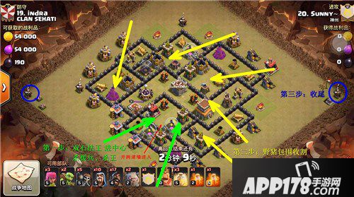 这打法利用一个石头,清掉一小片防御,并且轻松杀掉蛮王,为野猪减轻任务。