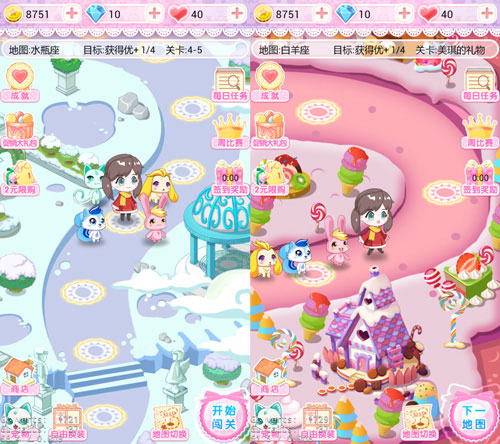 魔仙堡、学校、居住区、十二星座,手游《巴啦啦魔法变身2》有着十余种丰富的地图场景,上百游戏关卡。你将跟随小魔仙的队伍,与他们一起畅游魔仙世界。每个地图都有不同的故事在发生,在旅途中你将根据人物要求,尝试各种搭配风格,参与魔仙世界各地正在发生的故事。