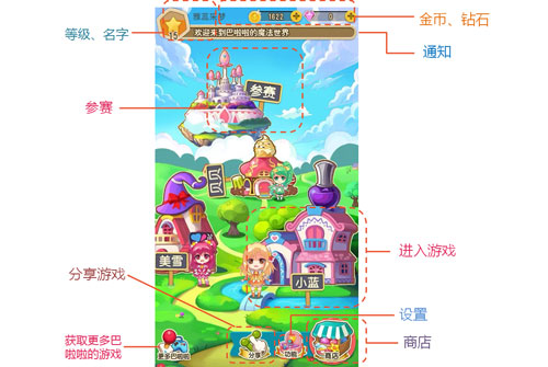 系列亲子手游《巴啦啦小魔仙》画面清新亮丽、还原出梦幻般的童话世界。你是不是也玩得很开心呢。不过你可能很少关注到很多小细节哦,今天为各位新手玩家讲讲游戏的主界面呢!