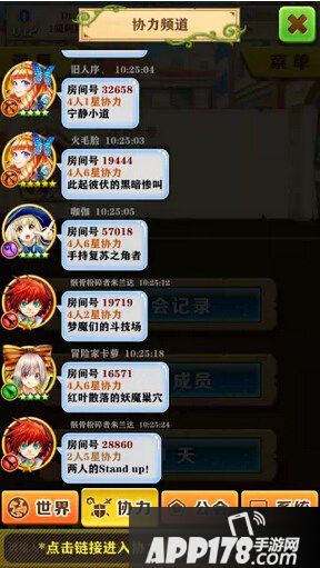 协力频道不可发布消息,只能看到设置为“开放”的协力房间的信息,包括:房间号、协力模式、目标副本。