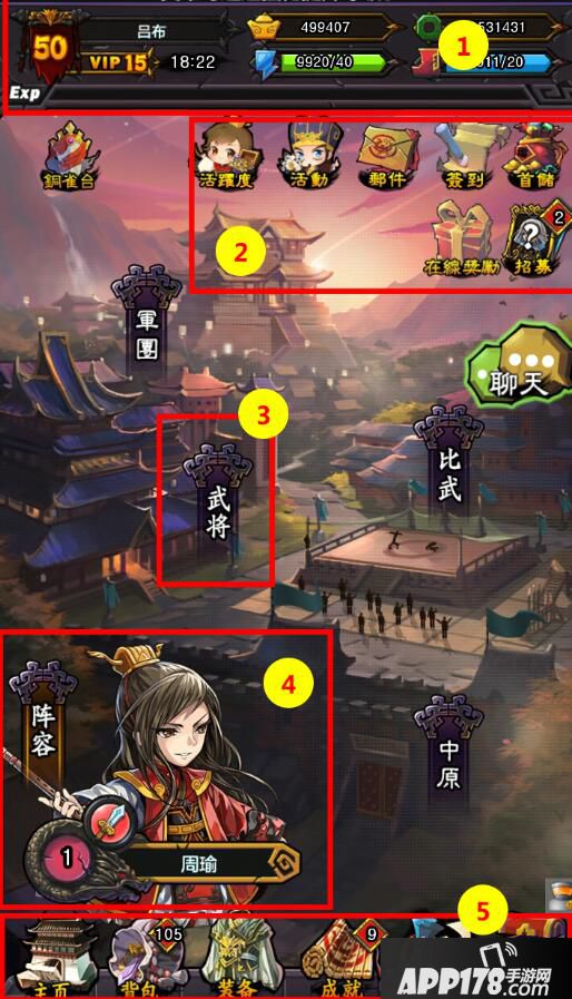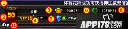 ⑥元宝数量:此为商城元宝,用于招募武将、购买商城道具等。