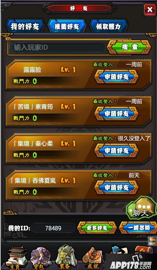 2. 推荐好友:玩家们彼此间可以依据游戏内“我的ID”进行搜索好友,亦可以透过系统随机推荐游戏内的其他玩家互相成为好友。