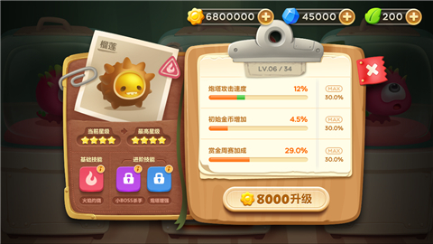 萝卜的冒险旅途也并不孤独,在宠物店中认领并养成水果宠物可以给萝卜战斗加成,在塔防关卡里释放大招拯救萝卜。水果宠物目前已经进入宠物商店的有榴莲、蓝莓、火龙果、石榴、西瓜。他们的技能各异,在塔防关卡中释放大招后就有一段时间的休眠CD时间,宠物养成属性越高则休眠时间越短。