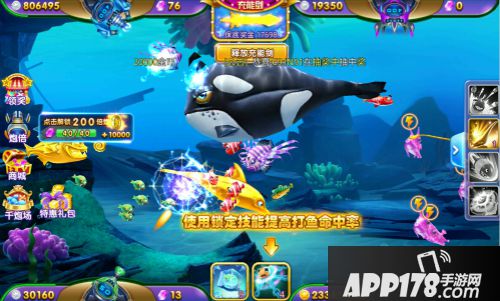 首先就是大家在新手教程中就能接触到的“鱼之束缚”,可以让你的炮台在一段时间内完全锁定目标鱼并且自动开火,在这段时间内可以实现百发百中的效果,炮弹不会被目标之外的其他鱼类阻挡,这个技能可以说是殴打BOSS鱼和集火幸运珍珠、漂流瓶的不二选择。