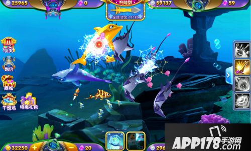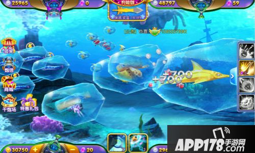 另一个就是可以“冻结时间”的冰冻道具,可以冻结海底所有目标一段时间,在这段时间内,玩家可以随意开火,全力攻击附近的目标。小编提示,当目标游到自己面前时冰冻殴打效果最佳。