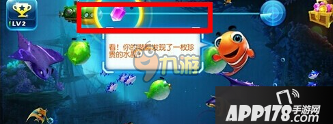 3.如上图所示红色框出来的区域,上面是我们的潜水艇,潜水艇右边有一个条线,上面会经常出现各种不同的东西,比如这张图中的水晶,当然更多的时候出现的是一个心,哪个就是我们获得的经验。