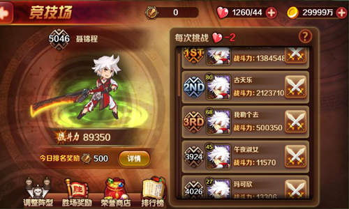 将帅沙场建功业,若想成为梁山战神,建下不世功勋,那么竞技场就是诸位好汉磨练排兵布阵之法的不二场所。在《暴走水浒》竞技场中,主角等级达到13级就可进入竞技场与游戏内的好友同台竞技,一决高下。当成功挑战排名比自己高的玩家,己方排名将会取代被挑战者,拥有迈向更高等级战场的资格。如果挑战排名比自己低的玩家,成功与否排名都不会发生改变。