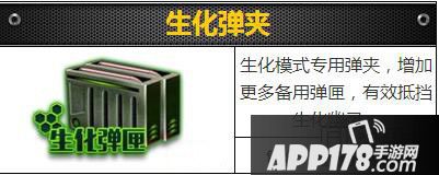 1、生化弹夹是生化模式专用的弹夹,可以增加更多备用的弹夹,有效的抵挡生化幽灵。