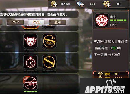 3、再来说说天赋,打PVE带机枪的话,有关机枪的3个天赋和生命是必须点满的,机枪弹夹(增加机枪主弹夹子弹)、机枪猎魔人(PVE增加机枪伤害)、机枪战神(增加机枪精准度)、血牛(增加最大生命值)。
