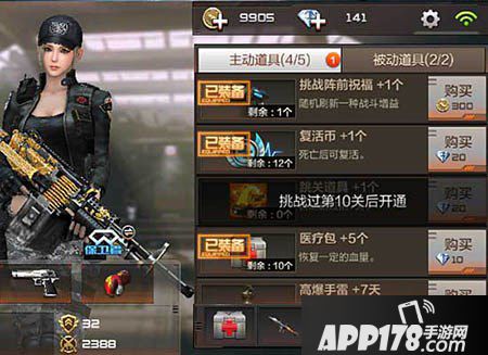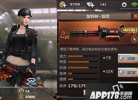 2、在武器选择方面的话,建议直接带机枪,重机枪和轻机枪都可以。前10关的话怪不多,重机枪载弹量多,打起来比较轻松,不用频繁换弹。后面的关卡,尽量选择轻机枪吧,怪物多了,你得跑起来绕地图打,带着重机枪不方便移动。重机枪加特林-狼牙,轻机枪的话就MG3-翔龙或者是MG3-银色杀手,这是RMB玩家推荐。普通玩家也可以买个7天的武器来用下,价格也便宜。